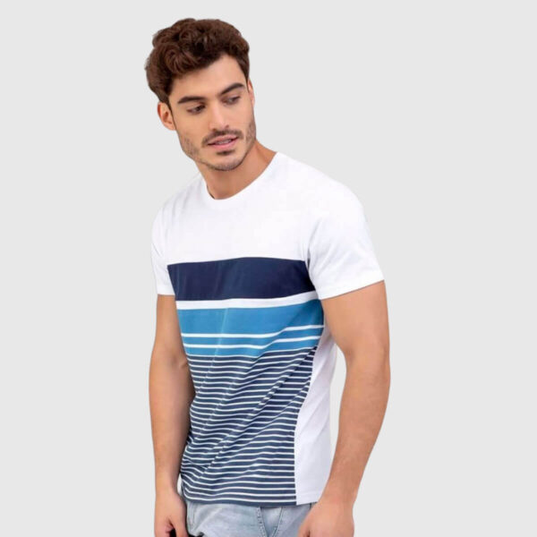 Polo para hombre, rayas 3 vivos colores, manga corta, cuello redondo, corte Slim Fit.